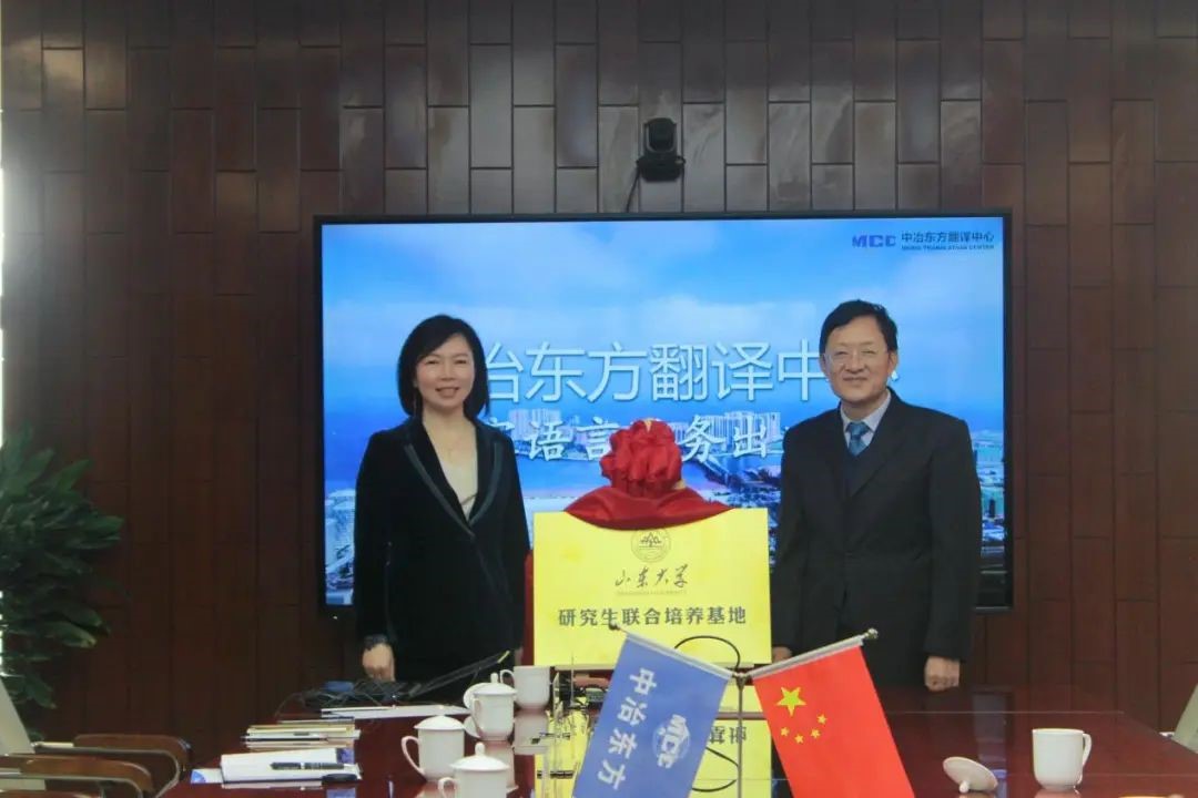 11月9日,必赢76net线路唯一官方网站与中冶东方工程技术有限公司翻译中心共建研究生联合培养基地揭牌仪式在青岛顺利举行。必赢76net线路唯一官方网站党委书记薛佩军、党委副书记刘华、MTI教育中心主任郑春光,中冶东方工程技术有限公司翻译中心主任赵忠会、生产运营总监白玉东、质控主管魏有为、客户部经理李敏及相关译员、实习生出席仪式,双方就人才培养、学科建设、资源互补、专业型翻译博士学位点建设等话题展开深入交流。