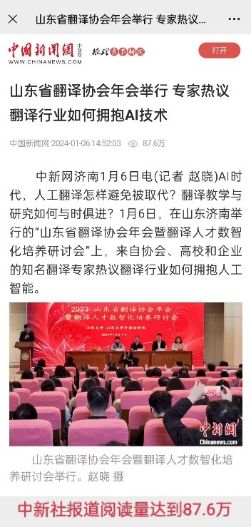 1月5日至7日,“2023山东省翻译协会年会暨翻译人才数智化培养研讨会”在洪家楼校区举办。来自海内外高校和企业的多位国际知名翻译专家学者、研究人员受邀参会并作主旨演讲。