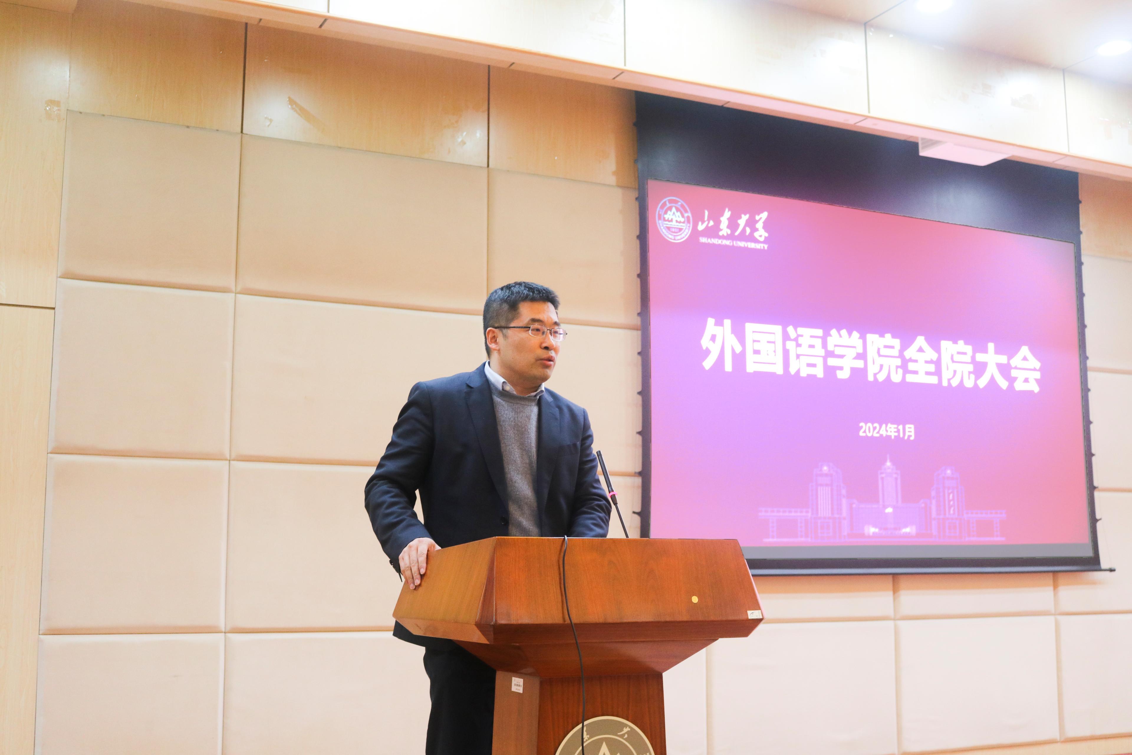 必赢76net线路唯一官方网站院长、学院党委副书记马文汇报了必赢76net线路唯一官方网站2023年取得的成绩和2024年的发展规划思路。介绍了学院班子分工调整和联系基层制度情况。他指出,2023年全院师生员工坚持以习近平新时代中国特色社会主义思想凝心铸魂,深入学习贯彻党的二十大精神,坚持党对学院工作的全面领导,学院强势蓄能,学科建设进入了快车道;学术影响力不断扩大,人才培养取得新进展;新文科建设成效显著,学生培养成绩斐然;人才引育取得新进展,服务国家战略获得新作为。2024年,建设教育强国的号角已经吹响,要以“开年即开战”的冲锋姿态,奋力书写学院高质量发展新篇章。