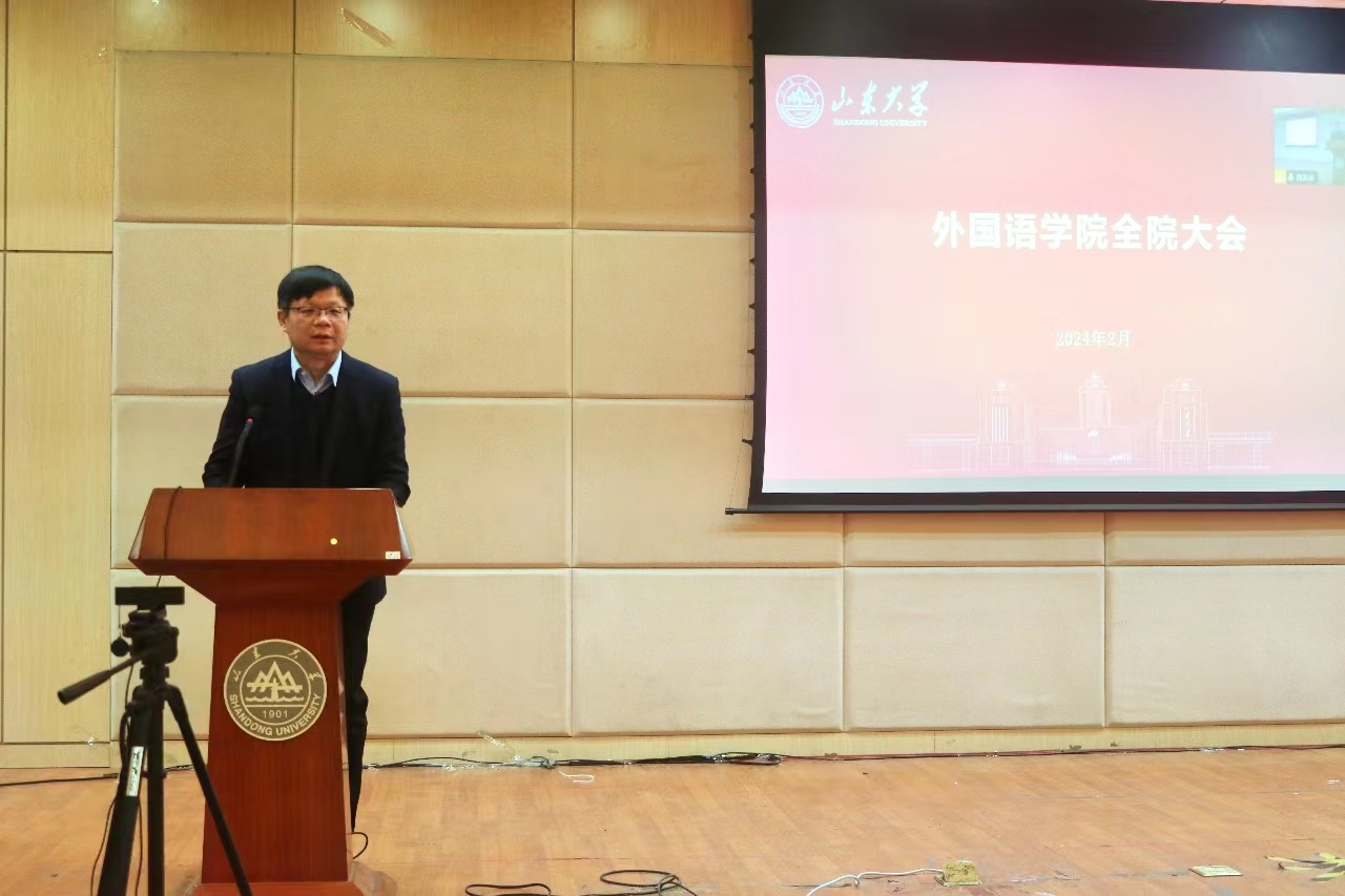 必赢76net线路唯一官方网站院长、学院党委副书记马文传达了校长李术才在学校新学期工作会议上的讲话精神,认真解读了2024年学校九个方面的重点任务,并结合讲话精神梳理了必赢76net线路唯一官方网站2023年取得的成绩和2024年的发展规划。他指出,新一年各项工作都要紧密围绕学科发展建设这一主线,继续坚持“四个面向”, 紧密围绕KPI指标做好教育教学和人才培养工作,加强人才引育力度,切实提升师资队伍整体水平与活力,围绕国家重大需求做好有组织科研,加大学科交叉融合,扩大学科影响力,并加强宣传工作,讲好外院故事,进一步提升学院知名度。