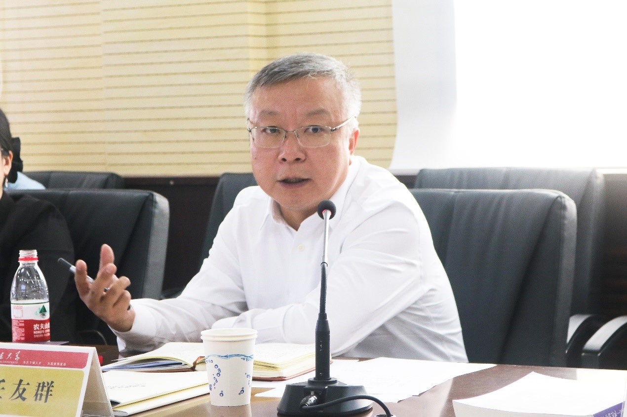 座谈中,任友群听取了外语学科发展情况,了解了学院90多年的发展历史,从学科建设、师资队伍、人才培养、科学研究、平台基地、国际合作、社会服务等方面就学院建设情况、未来发展规划进行了深入交流。