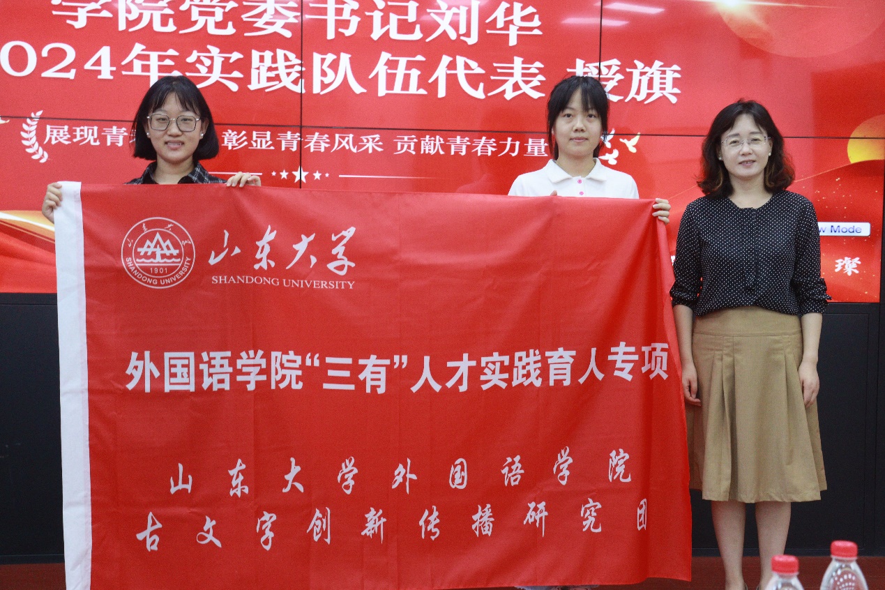 刘华为6支社会实践代表团队一一授旗,勉励同学们承担起时代赋予青年人的历史使命,满怀热血出征,满载硕果归来。