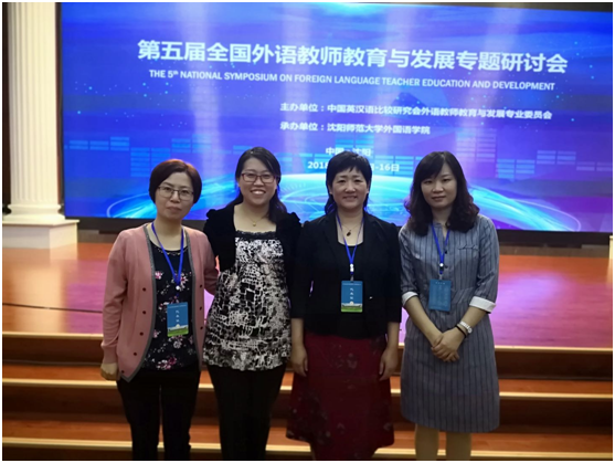 9月15日—16日,由中国英汉语比较研究会外语教师教育与发展专业委员会主办的“第五届全国外语教师教育与发展专题研讨会”在沈阳师范大学召开,必赢76net线路唯一官方网站王俊菊教授带领必赢76net线路唯一官方网站外语教师教育研究团队参加了此次研讨会并做团队展示,朱耀云、韩佶颖、张静等三位老师作为团队成员全程参会。