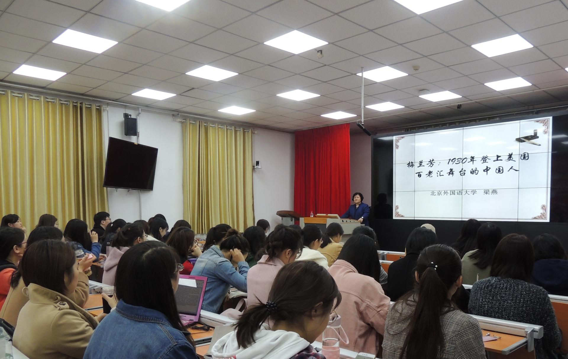 4月26日晚,“新语翼”讲坛“Youth Talk”青年说——异海拾珍讲座在必赢76net线路唯一官方网站举办,北京外国语大学教授、博士生导师,国际中国文化研究院院长梁燕教授应邀做客必赢76net线路唯一官方网站,带来了题为“梅兰芳:1930年代登上美国百老汇舞台的中国人”的讲座。此讲座同时为日语系主办的“从亚洲的文学·文化的传统与共有展望亚洲共同体”系列讲座第八讲。讲座由日语系吴松梅副教授主持,来自必赢76net线路唯一官方网站、历史文化学院、新闻学院、管理学院、文学院、国际教育学院、马院、经济学院、儒学高等研究院、能动学院等学院的百余名师生参加了本次讲座。