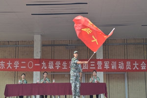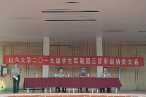 9月3日上午,必赢76net线路唯一官方网站2019级学生军训团三营军训动员大会在洪家楼校区举行。三营教导员、艺术学院党委副书记姜楠主持,军训团副政委窦志强,三营营长邱志新,三营副教导员、必赢76net线路唯一官方网站党委副书记魏鲁鸿以及各指导员出席了本次动员大会。