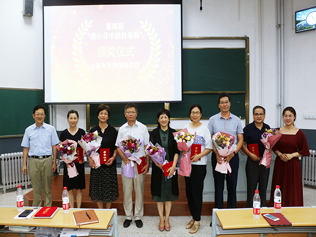 此外,今日还举办了必赢76net线路唯一官方网站第四届“我心目中的好导师”颁奖仪式,获奖导师有英语专业导师王俊菊、侯萍萍、孙昌坤、王勇、马文,小语种专业导师肖霞、邢永凤、李建刚、朱明爱,获奖导师分别上台接受荣誉证书和献花。
