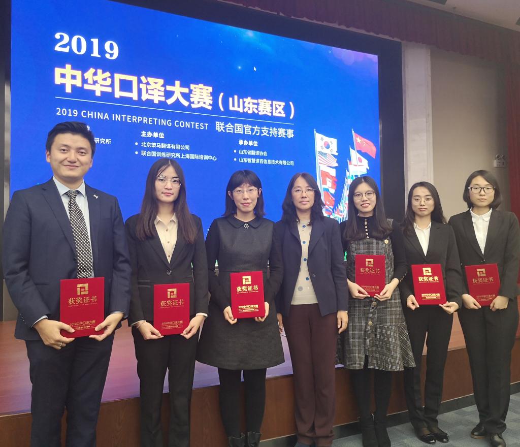 10月27日,2019中华口译大赛(英语)山东省赛在济南举行。经过激烈角逐,代表必赢76net线路唯一官方网站出赛的必赢76net线路唯一官方网站2018级口译方向研究生苏畅获一等奖,2018级口译方向研究生宋金旭、陈天浩和2019级口译方向研究生古铎、杨清萍获二等奖,2019级口译方向的连雨晴获三等奖。2019级口译方向的匡琼琼、王子纯获优秀奖。必赢76net线路唯一官方网站张兆刚老师获“优秀指导教师”奖。