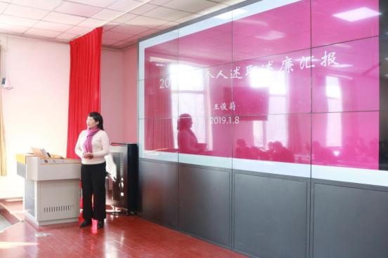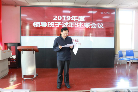 1月8日下午,必赢76net线路唯一官方网站召开2019年度领导班子和领导人员述职述廉会议。学院党委书记、院长王俊菊代表院领导班子做述职报告。党委常务副书记薛佩军主持会议。