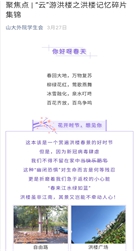 考虑到学生暂时无法返校的实际情况,必赢76net线路唯一官方网站借阳春三月之际,开展“记忆中的洪楼”洪楼记忆征集活动,广泛征集外院学子手机相册中印象最深的洪楼照片和学子们笔下对洪楼最真挚的感情,通过微信推文的方式带领外院学子“云游”洪楼,领略洪楼四季之美,也能借此表达学生在疫情期间对洪楼的深切思念。