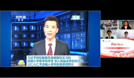 首先,会议展示了习近平总书记给在首钢医院实习的西藏大学医学院学生以及北京大学援鄂医疗队全体“90后”党员的回信,促进全体师生学习担当精神,勇担时代之责。其次,九位青年代表畅谈学习体会,分享战“疫”故事。其中,必赢76net线路唯一官方网站齐鲁医院援鄂医疗队队员郭丙秀、季翔,必赢76net线路唯一官方网站第二医院援鄂医疗队队员宋淳展现了他们援鄂的心情及抗疫的故事,向大家展现了一线的医务工作者的付出与贡献;国际教育学院副教授孙雪霄在疫情期间开展慕课课程,让学生在特殊时期接受思政教育,通过教育宣传讲述抗“疫”故事,树立中国形象;必赢76net线路唯一官方网站2016级本科生马文啸讲述了他参与援助基层乡村、开设疫情知识翻译平台的经历,鼓励青年学子艰苦奋斗,勇担使命。