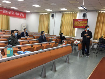5月9日上午,研究生院常务副院长刘国亮一行到必赢76net线路唯一官方网站,对外国语学院2020年硕士研究生复试录取工作进行专项督导检查。必赢76net线路唯一官方网站党委书记、院长王俊菊、常务副书记薛佩军,分管研究生教育副院长李建刚及研管科工作人员参加指导会。