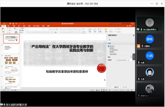 必赢76net线路唯一官方网站2019年共有7个项目获得立项,包括课程思政、课堂教学改革以及招生拓展工作研究三类。应用英语系闫秋燕老师、王勇老师、高云老师,俄语系白茜老师,法语系张蔷老师和西班牙语系张沁园老师分别介绍了自己的项目进展情况、阶段性成果、存在问题和解决方案、下一步建设计划安排及预期成果,以及经费使用情况。《俄罗斯文化揽胜》的项目团队在本学期第一次把《俄罗斯城市历史文化解读》慕课投入实践,学生反馈良好。《英语技能课程中的高阶思维能力的培养改革与实践》、《基于互联网+的大学生英语阅读素养培育的探索与改革》、《“产出导向法”(POA)在大学西班牙语专业教学的实践应用与创新》三个项目,与学生的专业课程紧密结合,实现了教学与研究互相促进。《国际组织双语复合人才培养机制研究》基于法英双语国际组织人才实验班的实践,逐步探索出国际组织中的双语人才培养机制。《外国语推荐保送招生拓展的探索实践及对“新高考”后招生拓展的借鉴》建立起了比较合理的保送生招生拓展机制,促进我院保送生的招收数量和质量产生了显著的提升。