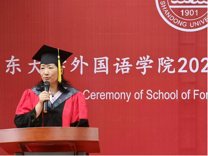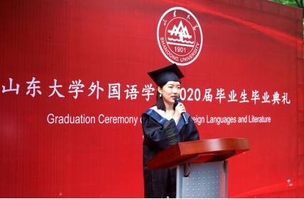 王俊菊在致辞中表达了对毕业生们的真诚祝福和殷切问候。她首先向圆满完成学业并即将走出校门的2020届毕业生们表示祝贺,并对毕业生们在大学时光里收获的成长和成绩表示肯定。鼓励毕业生们在国际形势不断变化的今天,身为一名外语人,要感受世界变化的脉搏,承担沟通世界,引领时代的责任。她介绍道,在必赢76net线路唯一官方网站成立九十周年之际,学院多个学科专业已经入选国家级和省级一流专业,各位毕业生参与并见证了学校和学院发展的进程,是“山大人”与“外院人”的骄傲。最后,王俊菊在毕业寄语中勉励毕业生们要发展一份自己所热爱的事业,以天下家国为己任,担青年应负之使命,为社会的进步和全人类的幸福而拼搏。希望各位毕业生向上而生,向善而行,并表示学院永远是各位同学坚强的后盾和坚实的依靠。