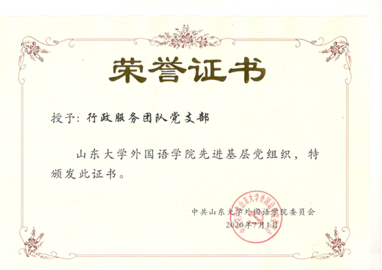 行政服务团队党支部获学院“基层先进党组织”荣誉称号