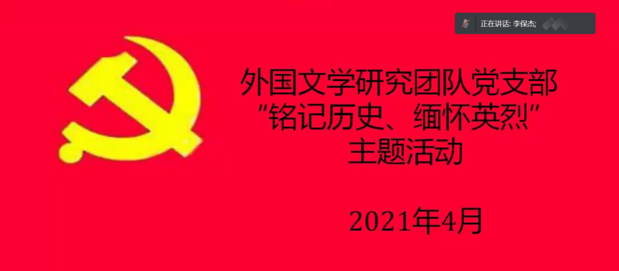 4月2日,外国文学研究团队支部举行了“铭记历史、缅怀英烈”主题党日活动。本次活动通过在线会议平台进行。活动由庄新红同志主持。