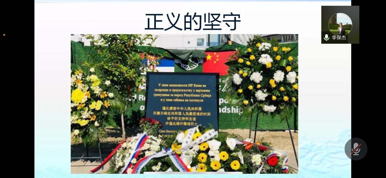 在党课环节,支部书记李保杰同志首先提醒党员同志:我们并非生活在和平的时代,我们只是生活在和平的国家。在世界经历百年未有之大变局之际,在回顾中华民族百年历程之时,我们比任何时候都更深切地感受到祖国安定的来之不易。当下重学党史、缅怀先烈,具有重要的教育意义。李保杰讲述了近期在大峰山革命根据地进行参观学习的体会,接着又从回顾济南战役出发,介绍了济南英雄山与毛泽东的渊源以及曾任毛泽东秘书和山东军区政治部主任的黄祖炎烈士的事迹。最后,李保杰还追忆了在我国驻南使馆遇袭事件中牺牲的三位中国记者以及为保祖国领空壮烈牺牲的“海空卫士”王伟等烈士的英勇事迹,指出和平时代离不开那些正义守卫者的坚守,他们的牺牲值得后人尊敬与缅怀。