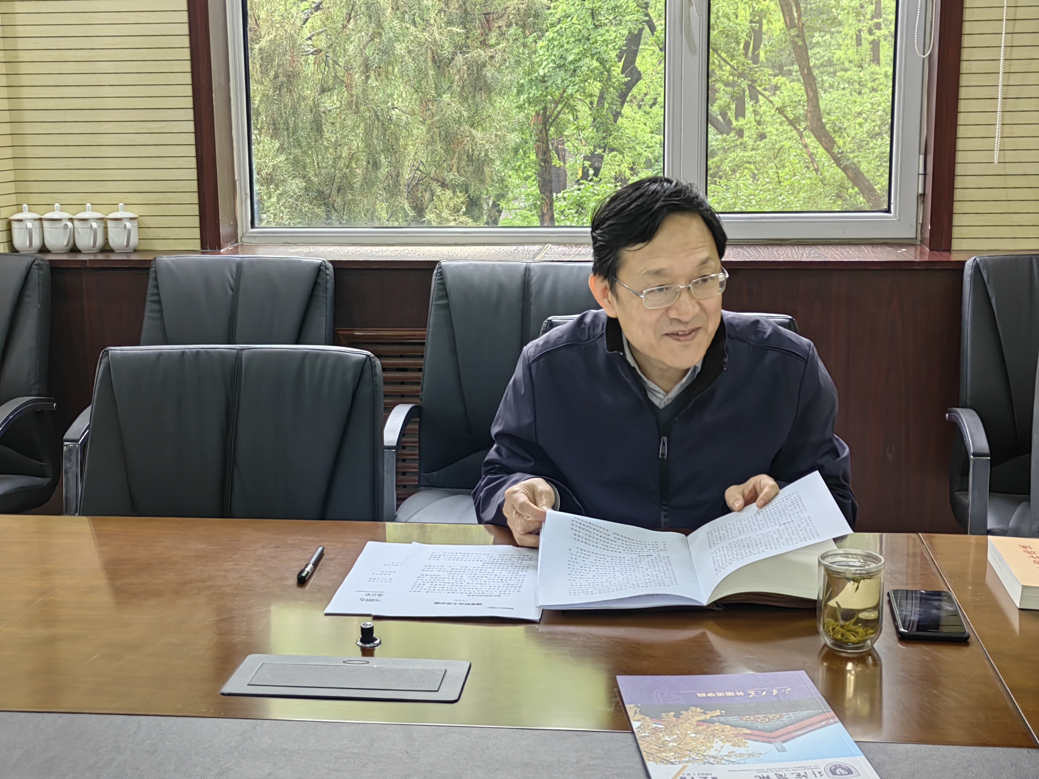 学院党委副书记魏鲁鸿全文领学《关于在全党大兴调查研究的工作方案》,领导班子成员将原原本本、逐字逐句学习《习近平著作选读》、《习近平新时代中国特色社会主义思想专题摘编》等。会上,学院党委理论学习中心组成员交流了学习体会,下一步将通过全面的理论学习、深入的调查研究、彻底的检视整改,聚焦新文科前沿、服务国家重大战略,推动学院事业高质量发展,切实做到高起点谋划、高标准推进、高质量落实主题教育。