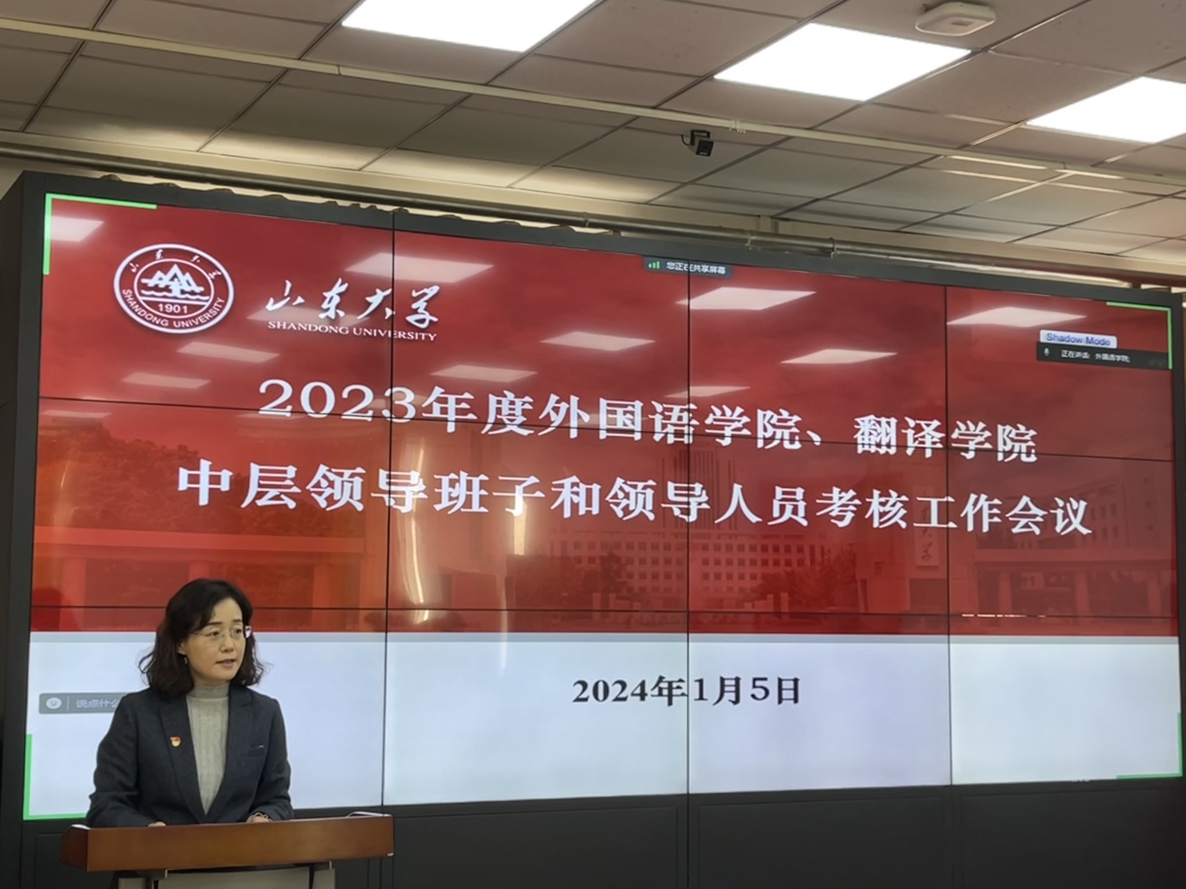 1月5日下午,必赢76net线路唯一官方网站、翻译学院召开2023年度中层领导班子和领导人员述职测评会议,必赢76net线路唯一官方网站党委书记刘华主持,必赢76net线路唯一官方网站长、党委副书记兼翻译学院院长马文代表学院领导班子进行年度述职。两院领导班子成员依次进行述职报告,90余名教职工参加会议。