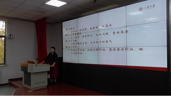 王俊菊同志的党课题目为“育人育才不忘初心 强院兴校牢记使命”。她指出在“不忘初心、牢记使命”主题教育中要严格按照守初心、担使命、找差距、抓落实的总要求,将学习教育、调查研究、检视问题、整改落实贯彻始终。全院教职员工要全面学习贯彻学校第十四次党代会精神,以“创建一流学科,建设一流大学”为目标,秉承“大外语”“国际化”“创一流”的战略思路,不断提高政治站位,充分发挥党支部战斗堡垒作用、党员先锋模范作用,以强烈的事业心进取心责任心推进学院改革发展各项工作落地见效。