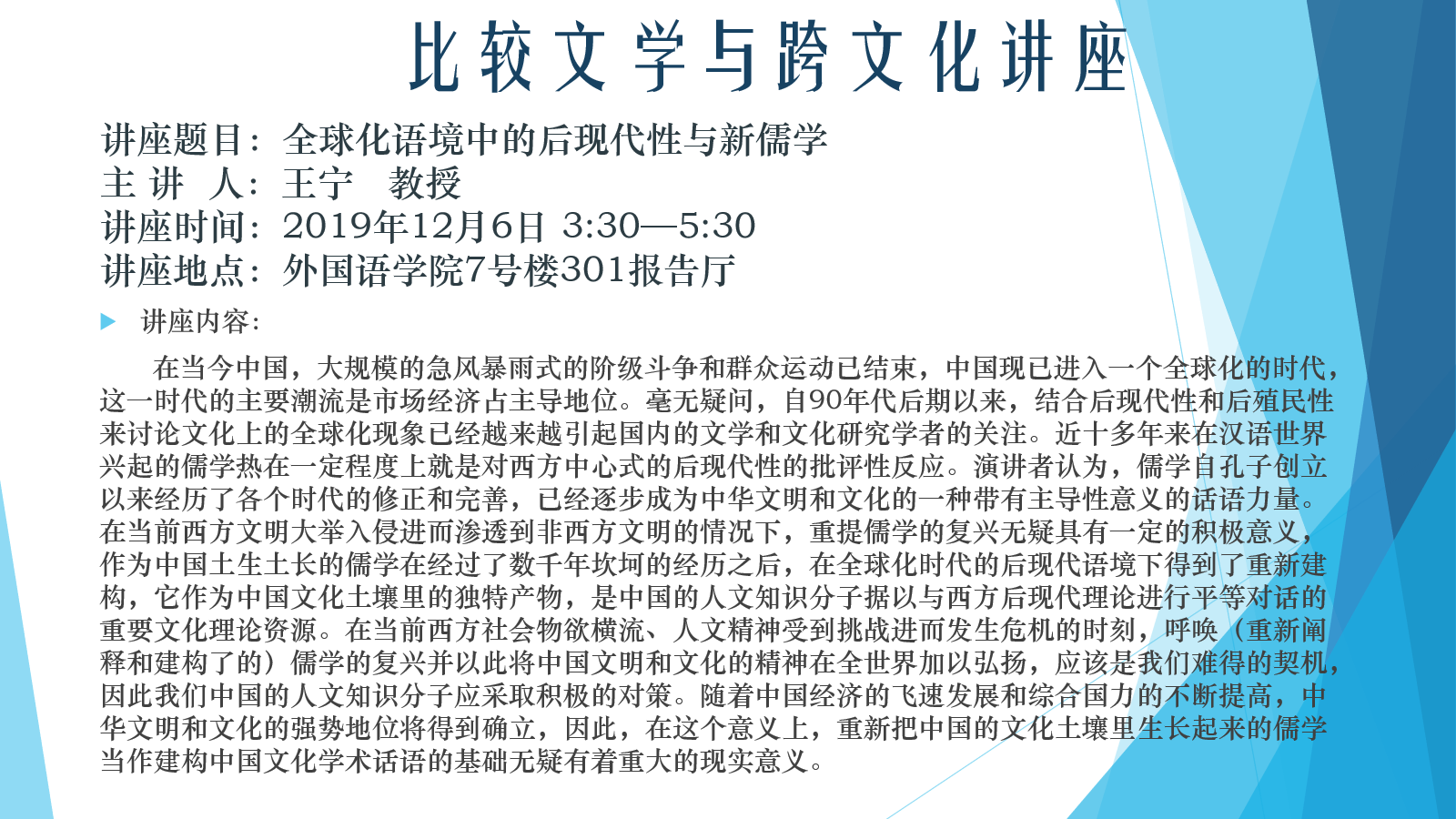 第一场:作为跨文化阐释的翻译 第二场:全球化语境中的后现代性与新儒学