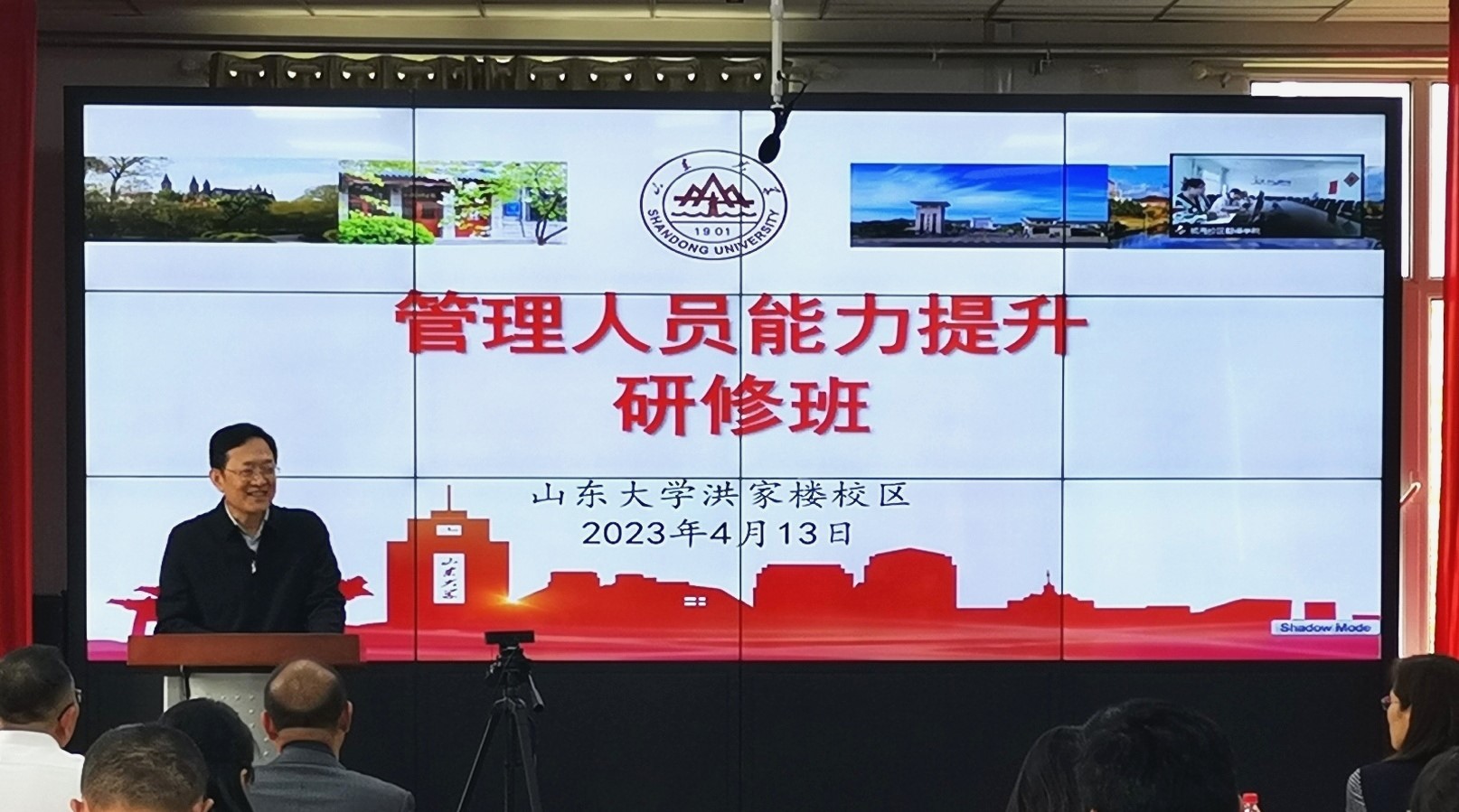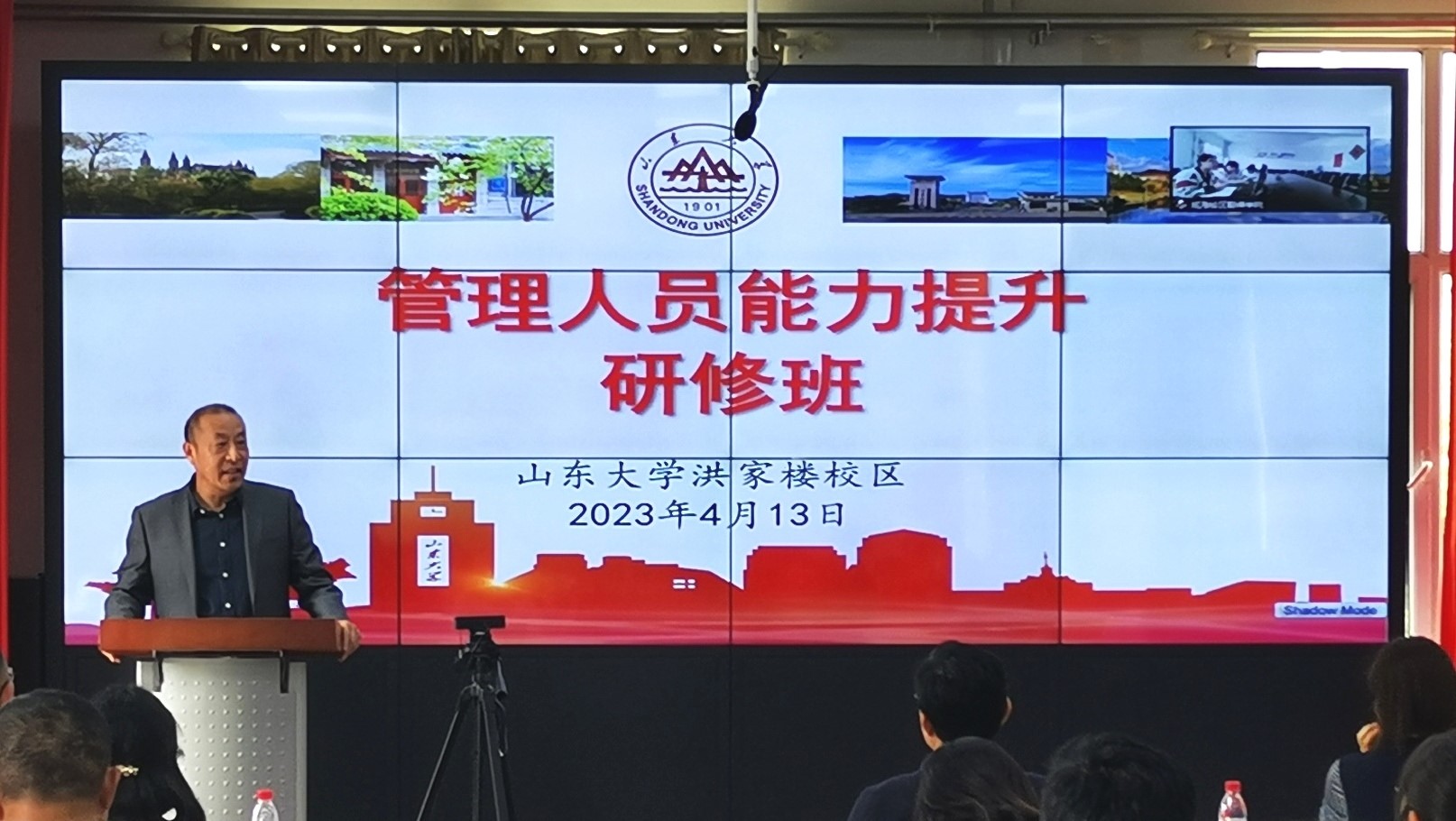 4月13日,学院管理人员能力提升研修班举行开班活动。研修班由继续教育学院、必赢76net线路唯一官方网站、艺术学院、威海校区继续教育学院、翻译学院联合开展。继续教育学院党委书记鲁统超、必赢76net线路唯一官方网站党委书记薛佩军、翻译学院党委书记于燕臣现场或线上出席开班仪式并讲话。必赢76net线路唯一官方网站党委副书记刘华主持开班仪式。