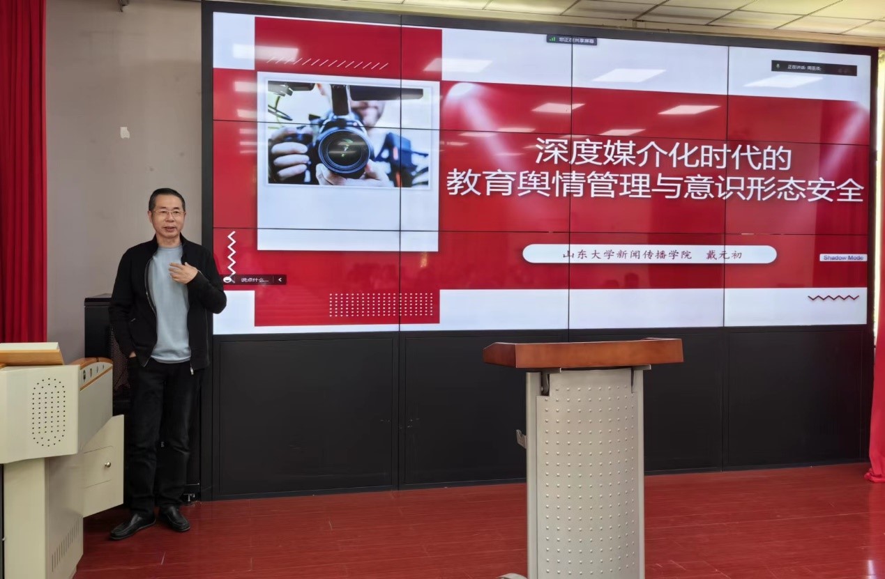 4月28日下午,管理人员能力提升研修班在必赢76net线路唯一官方网站7号楼301教室进行了第三次课程,由新闻传播学院戴元初教授主讲《深度媒介化时代的教育舆情管理与意识形态安全》。