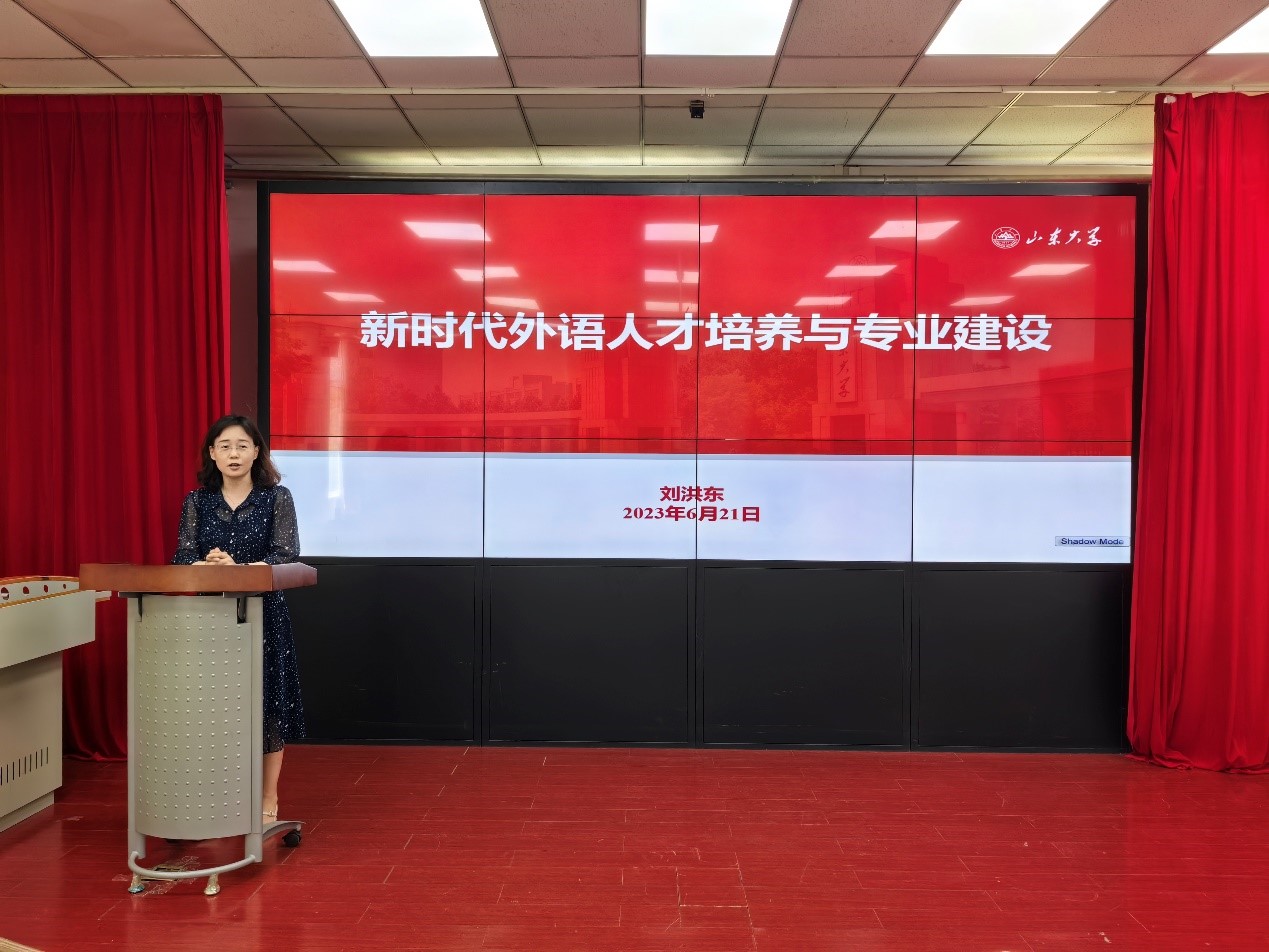 6月21日下午,我院在7号楼301教室举办管理人员能力提升培训,刘洪东副院长主讲《新时代外语人才培养与专业建设》,马文副院长主讲《外语学科发展与“十四五”规划》,全体行政教辅人员参加。培训由院党委副书记刘华主持。
