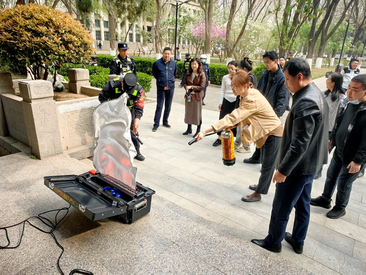 演练还包括了灭火器的使用示范。校公安处工作人员详细讲解了灭火器的操作方法,并让师生们亲自体验灭火过程。