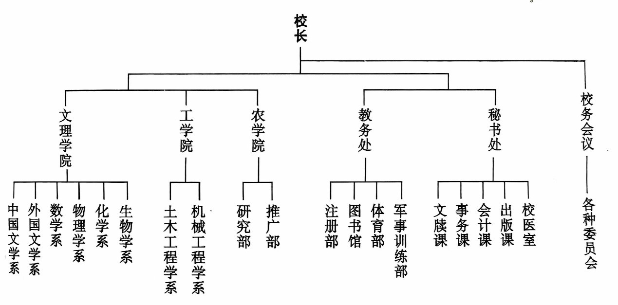 此外,在校长领导下,还设立科学研究、教师聘请、校舍建筑、教学设备购置、毕业考试等专门委员会。这些委员会的委员,也都是从教授中聘请,发挥了教授治校的作用。