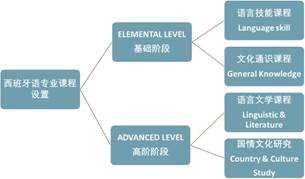 本专业课程设置遵循高校外语课程设置的整体规划,突出国家对西班牙语人才的需求特点。课程设置符合零基础学习者语言习得规律,课程整体呈现阶段性分布,并根据具体学习阶段确定与之相应的教学目标。基础学习阶段在传统语言课程基础上加大实训课程的比例, 形成“听-说-读-写”一体化的综合平行课程。高年级阶段培养在深化培养学生综合语言运用能力基础上,突出学习者未来多样发展的导向性作用,呈现语言-文化-国情研究-经贸等多元化、跨专业课程体系,满足学习者的学习需求。